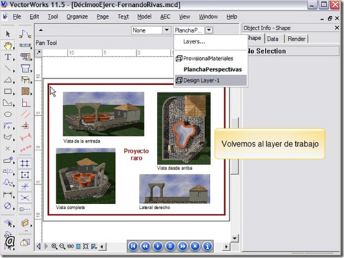 Para el que le interese introducirse a VectorWorks, aquí están disponibles 10 videos para practicantes de Arquitectura, que inician desde cómo relacionar elementos en el espacio, pasando por determinación de espacios entre muros con sus posteriores detalles de techos, pisos, escaleras, etc., aplicación de materiales, luces y cámaras, hasta la generación de perspectivas y animaciones orbitales, según ruta y solares.
