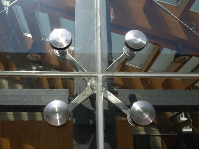 En lugar de estar montado en un marco, el cristal se fija a un soporte, que a su vez está unido a un elemento estructural del edificio, la estanqueidad de todo el sistema se obtiene por un sello de silicona. El cristal se fija sobre su soporte por medio de una junta de silicona a lo largo de los bordes de la superficie interna. Esta técnica se puede utilizar con casi todos los tipos de vidrio, incluyendo las unidades de vidrio aislante.