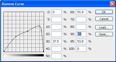 Left of each color chooser, you can see a diagram. Click on it, and set the brightness values of the selected color on the curve on the left side of the appearing dialog box. On the right, you can do this by entering numbers, and the curve will change accordingly. To avoid the picture being too dark, pull the end of both curves downwards: for black, to about 95% and for the brown, to about 66%.