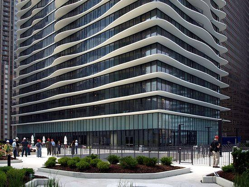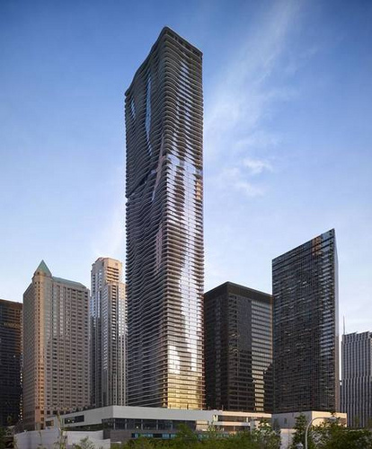 Aqua Tower es un rascacielos de 82 niveles residenciales de uso mixto ubicado en el centro de Chicago. Posee una altura de 819 pies (250 m). La torre se asemeja más a una estructura escultorica que a un bloque residencial. La responsable del diseño fue la arquitecta Jeanne Gang y su firma Studio Gang, siendo este su primer proyecto de rascacielos. Este es el más grande proyecto alguna vez otorgado a una firma norteamericana liderada por una mujer. El proyecto fue comenzado en 2006.