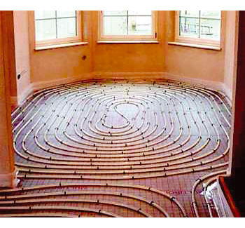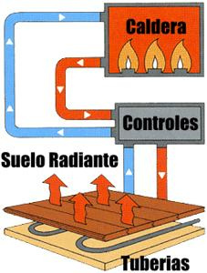 - Sistemas Radiantes por Agua : La Calefacción por suelo radiante de agua consiste en la instalación de un tubo de polipropileno sobre aislamiento de alta densidad, empotrado en la capa de mortero del pavimento, ocupando toda la superficie de la estancia a climatizar y que utiliza agua como elemento transmisor del calor.