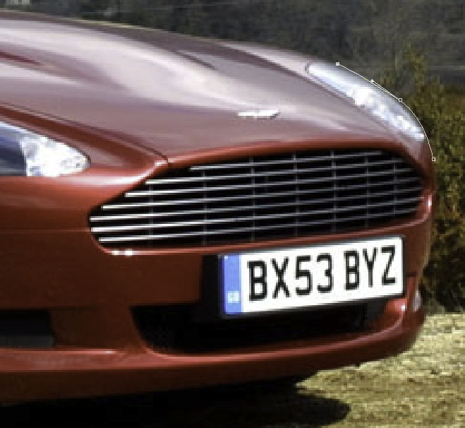 Una vez abierta la imagen, seleccionamos la herramienta Pluma [P], hacemos zoom sobre el morro del coche y empezamos a trazar su perímetro.