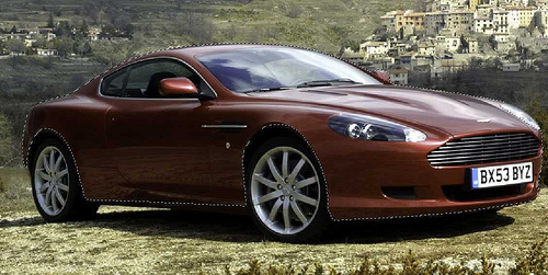 Es importante dejar fuera aquellas zonas a las que no se le cambiara el color, como las ruedas. Las partes del interior, como los cristales los dejamos para luego. Una vez cerrado el perímetro, pulsamos con el botón derecho y elegimos Hacer Selección, con un radio de calado de 0 ó 1, de forma que obtendremos algo así: