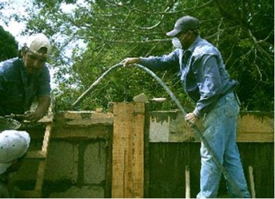 Se recomienda medir las partes de arena y vaciarlas sobre un piso limpio y plano. Añadir las partes correspondientes de cemento y mezclar hasta obtener un color uniforme. Luego añadir las partes de grava y el agua debidamente medidas.