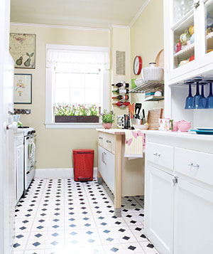 1- Instale azulejos de cerámica brillante en el suelo para reflejar la luz y hacer que la cocina parezca más grande. Opte por materiales pálido o neutrales.