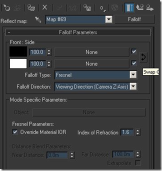 Ahora llegamos a la parte más compleja: el texturizado. Siempre que tengamos pensado renderizar con VRay, debemos usar materiales VRay. Aqui dejamos los parametros para el agua. Básicamente es un material VRay, con un Falloff Fresnel en Reflect. En bump le he metido un bitmap que tenía a mano, pero podemos probar a meterle un mapa ruido u otro bitmap que mas nos guste.