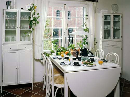 En Comedores de escasa dimensiones debemos elegir siempre colores con tonos suaves, luminosos y con poca variedad. Los tonos marfil, amarillo pálido y blanco son opciones que nunca fallan. Usa algún color oscuro o vivo para dar jerarquía a algunos elementos.