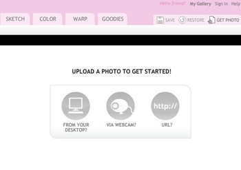 La página nos permite elegir si queremos el sketch o boceto en blanco y negro o en color. También nos da la posibilidad de distorsionar la foto y de agregarle distintos elementos.