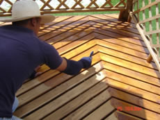 3. Como el deck de madera de piscina esta expuesto a algunas condiciones extremas tales como cambios bruscos de temperatura y exposición directa al sol, se recomienda aplicar un refuerzo con un trapo o brocha impregnado del algun producto limpiador de madera sobre la superficie, con el fin de que mantenga su tonalidad y su belleza.