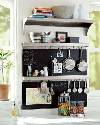 -Utilizar inteligentemente las paredes de la cocina. Usa repisas, estantes, cubos, cestas, lo que mejor combine con tu estilo para poder almacenar todo lo necesario para manejar tu día a día.