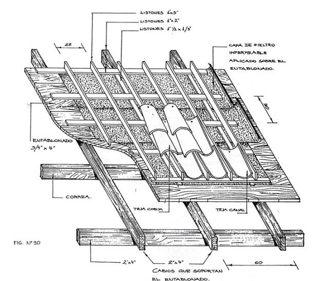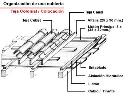 Las tejas pueden colocarse en dos posiciones diferentes, con su concavidad hacia arriba, con el objeto que pueda recibir a la teja que tiene que superponerse. Esta última recibe el nombre de “teja canal”.