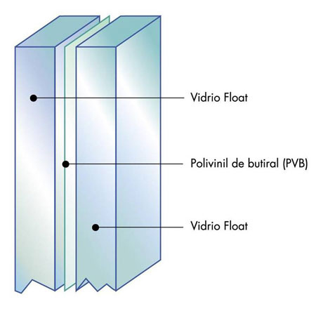 En caso de rotura los trozos de vidrio quedan adheridos a la lámina de PVB, impidiendo su caída y manteniendo el conjunto dentro del marco sin interrumpir la visión, ni sus atributos de barrera contra la intemperie.
