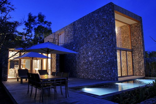 En la casa minimalista la fachadas sobresalen las líneas rectas y bloques de formas puras y simples. Desde el color se tiende a la monocromía de tonos suaves predominando el blanco y el crudo. Siempre creando contrastes de materiales y texturas diferentes. Vidrio, piedra, revoques rústicos, y maderas. Todo un conjunto de materiales naturales combinados en composiciones de líneas rectas y racionales.
