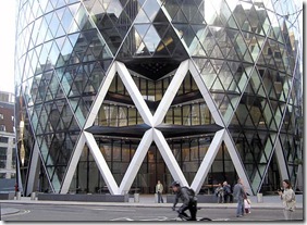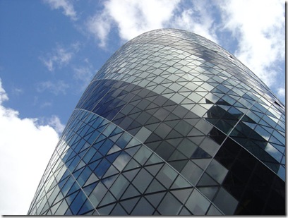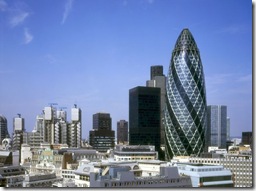 Gherkin, la torre Swiss Re, o edificio Swiss Re,ubicado en el 30 de St Mary Axe en el barrio financiero de Londres es el segundo edificio mas alto de esta ciudad, después de la Torre 42, y el sexto de todo Londres. El diseño es del genial Norman Foster, Ken Shuttleworth y de los ingenieros de Arup.