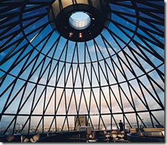 Aunque el edificio tenga forma curvada, sólo hay una pieza de cristal curvado en todo el edificio, que es la cúpula del último piso, el 40, en el que hay una bar y se puede disfrutar de una vista de 360º de todo Londres.