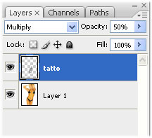 Now create new layer: Shift + Cntrl + N, call it Tattoo and draw your tattoo. Now we got 2 layer:
