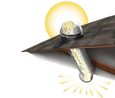 Su funcionamiento se basa en un sistema que capta la luz solar y la envía al interior mediante pequeños espejos. La iluminación con tubo solar no transmite calor, sólo deja pasar la luz. Por su tamaño pequeño (normalmente 10 o 14 pulgadas de diámetro), se los puede emplear en espacios en que los tragaluces comunes no caben. Es posible instalar este tipo de tragaluces en pasillos, en cuartos de baño y hasta en closets. A pesar de sus reducidas dimensiones, dejan entrar mucha luz.