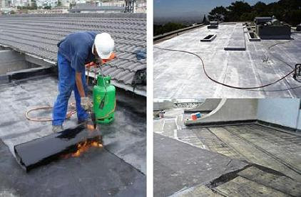 En primer término se aplica una imprimación de emulsión asfáltica, que funciona como adherente, para luego calentar el manto asfaltico, que proveerá una adherencia adecuada a la losa. Este tipo de impermeabilizante debe ser aplicado por especialistas, ya que se requieren herramientas y equipos especializados.