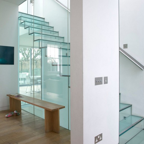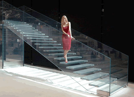 El uso de las escaleras de vidrio se han convertido en algo más común durante los últimos años. Esto es debido en parte a la moda arquitectónica, pero tambien al resultado de considerables mejoras que se han hecho en lo referente a la resistencia del vidrio utilizado para fines estructurales.