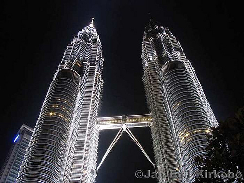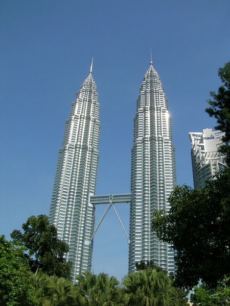 Las Torres Petronas son dos torres de pisos gemelas localizadas en Kuala Lumpur, Malasia. Fueron diseñadas por el arquitecto Argentino-Americano Cesar Pelli. y construidas entre los años 1992 y 1997. Cada una de las Torres tiene 88 pisos y 1,483 pies (452 m) de altura. Las Torres fueron certificadas como las más altas del mundo en 1996, basándose en su cima estructural. Éstas mantuvieron el título hasta el 2004 cuando el Taipei 101 las sobrepaso.