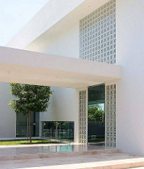 Los bloques de vidrio también son unos elementos muy utilizado en la decoración de exteriores, por ejemplo, para fachadas de edificios. Sobre todo se aplica en la construcción de los bajos de los edificios. Estos permiten que traspase la luz sin que desde el exterior se pueda ver el interior del local.