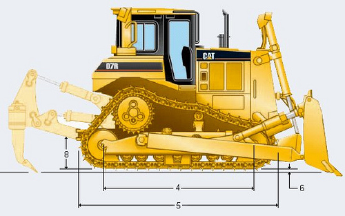 El bulldozer tiene una gran movilidad gracias a los ejes de sus ruedas o orugas. Además esta característica hace que el peso de la carga este distribuido en todo el vehículo impidiendo que aunque la topadora este en suelo fangoso y blando nunca se hunda en el suelo y pueda circular y el terreno sobre el que se deberá trabajar no sufrirá ningún daño por culpa de la maquinaria.