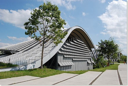 La excepcional arquitectura del Zentrum Paul Klee se caracteriza por la estructura de acero de su cubierta. Su geometría en forma ola, que se eleva desde la parte posterior hasta las elevaciones frontales, es tan especial que cada metro individual, con vigas de acero de 4’2 Km., tiene una forma diferente.