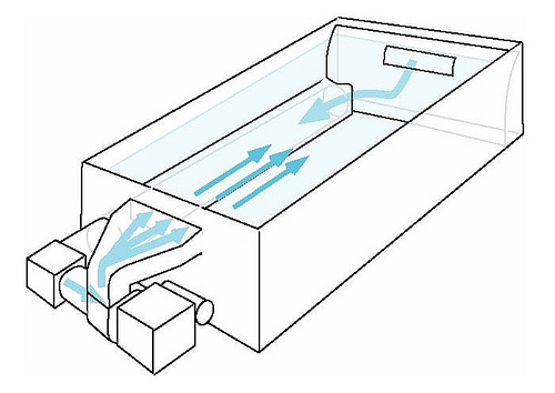 La corriente de la piscina sin fin es ancha y profunda, y es adecuada para todo tipo de habilidades de natación y necesidades físicas. También permite fijar la temperatura con precisión, según las preferencias y necesidades. La corriente que genera esta piscina fluye libre de turbulencias llenas de aire o burbujas, dando el máximo beneficio al esfuerzo del nadador.