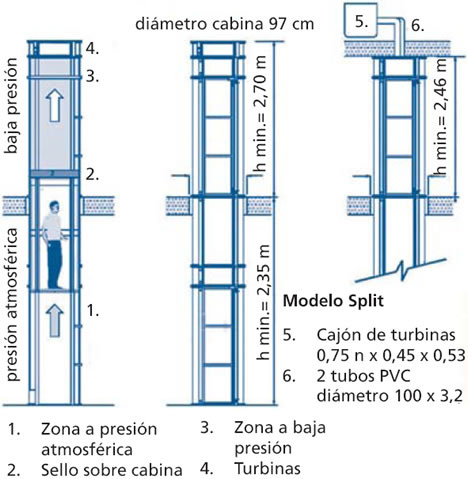 El elevador neumático de vacío es una de las mejores soluciones cuando se ha pensado instalar un ascensor,elevador o plataforma elevadora, ya que, entre otras cosas, no requiere foso ni sala de máquinas .