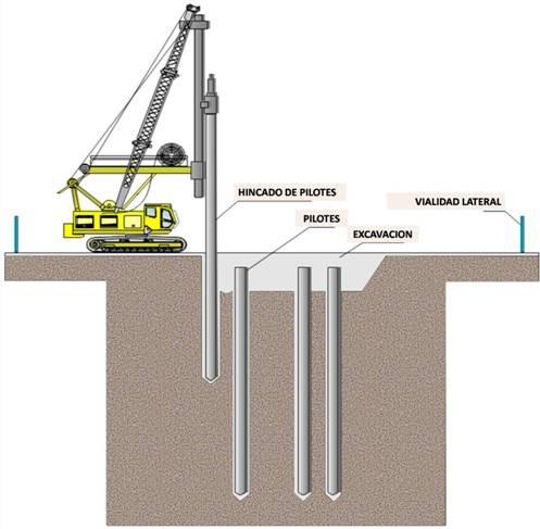 – Pilotes prefabricados, hincados por el impacto de martillos