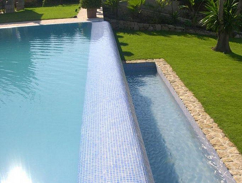 - Ya que el nivel del agua es el mismo que el del entorno, se consigue una mayor integración paisajística de la piscina. La lámina de agua, se convierte en un elemento decorativo más.