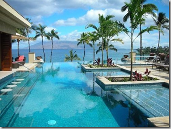 Las piscinas infinitas, constituye uno de los diseños más populares, y también de los más costosos, puesto que es el preferido de los arquitectos paisajistas y de los diseñadores expertos en este campo. Las piscinas infinitas responden a una intención arquitectónica de integración con el paisaje. Sus diseños, buscan lograr un efecto visual de expansión ilimitada, inmensidad acuática y de fusión con el mar, o como en este caso, con el cielo.