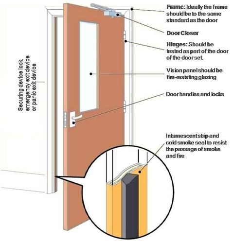Las puertas contra incendios tambien llamadas puerta RF (Resistentes al Fuego), están diseñadas para soportar altas temperaturas y resistir las llamas y evitar que los incendios se propaguen a otras secciones de una casa o edificio. Muchas de estas puertas menudo incluyen sellos contra fuego, que llenan los huecos entre la puerta y el suelo. Estos sellos ayudan a evitar que el humo se transmita a través de la puerta.