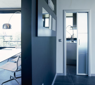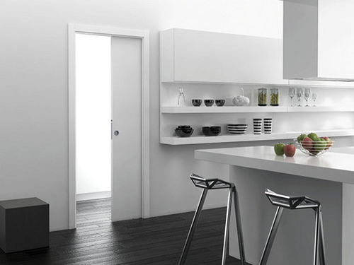 Este es el caso de las puertas batientes normales, las cuales al abrirse ocupan un espacio que tiende a quedarse inutilizable. Para contrarrestar ese problema podemos optar por colocar puertas correderas.