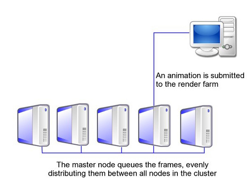 Esta es una práctica muy conocida en la industria del cine 3D y, es difícil imaginarse que una sola computadora pueda generar tantas imágenes por si sola sabiendo que cada frame (cuadro de animación) tarda 6 horas aproximadamente en generarse y que para hacer un segundo de animación son necesarios 24, 25 o 30 frames.