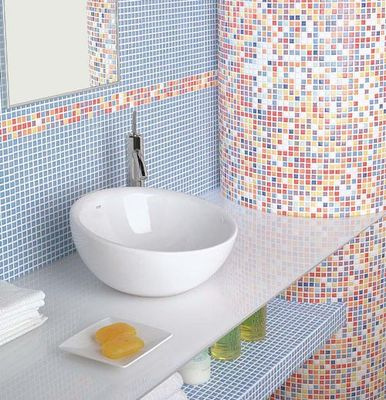 El Gresite es un revestimiento fácil de limpiar, pues las pequeñas piezas vítreas forman un conjunto unido por una malla que adquiere el tamaño de una baldosa, con la particularidad de ser flexible, llamada tesela. Este revestimiento permite diseños especiales, Ya que viene presentado por pequeños azulejos de 3 o 4 centímetros de lado, esto permiten hacer composiciones originales en varios colores creando cenefas, degradados y y dibujos decorativos que dan u toque de elegancia al baño o piscina.
