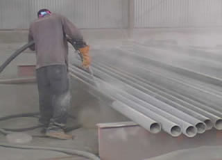 Este sistema consiste en la limpieza de una superficie por la acción de un abrasivo granulado expulsado por aire comprimido a través de una boquilla. La limpieza con sandblasting es ampliamente usada para remover: Óxido, Escama de laminación y cualquier tipo de recubrimiento de superficie, preparándola para la aplicación del recubrimiento.