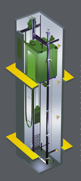 Este sistema es el ideal para edificios que no cuentan con posibilidades de modificar las estructuras interiores. Elimina la necesidad de una sala de máquinas superior y la instalación de la misma puede estar hasta 15 metros de distancia del hueco de la vertical del hueco.