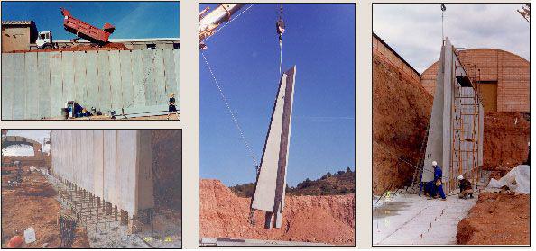 – Muros de pantalla prefabricada y zapata “in situ”.