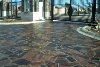 Cada loseta es una pieza única tal como la piedra natural. Puede usarse tanto para interiores como exteriores. Su mantenimiento es más económico que de piedras naturales.