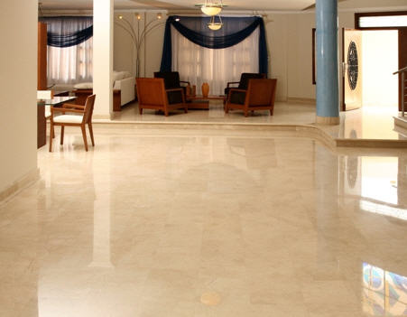 Es una piedra resistente, impermeable y de fácil limpieza. Por su particular diseño de vetas y su costo elevado, se lo relaciona con la elegancia y la sofisticación. Al mármol es conveniente hacerle un pulido por abrasión con el cual este alcanza alto nivel de brillo natural, es decir: sin ceras ni componentes químicos. Los pulidos pueden ser brillantes, semibrillantes y mates. Las variedades de mármol más usadas son: carrara (con base blanca), botticino (con base verde) y verona (con base roja).
