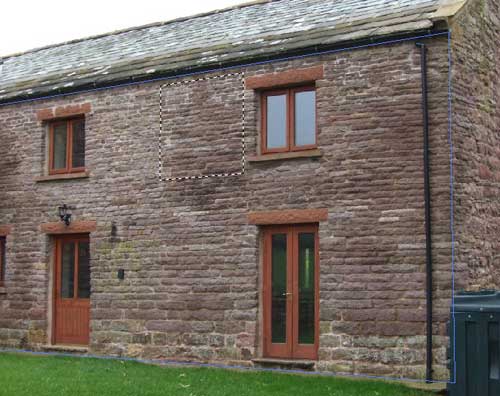 The Vanishing Point is a tool in Photoshop that automatically adjusts for the perspective planes in an image as you work. In the example image beside, it would be very difficult to take the windows out of the picture because the angled perspective doesn’t work so well with the clone tool. But the Vanishing Point tool makes it quick work.